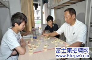 在棋盤上過招,青年員工自信滿滿,郭臺銘氣定神閑