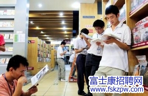 富士康員工在閱覽室讀書