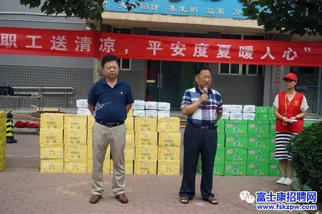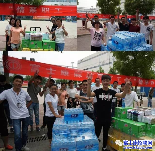 7月14日上午9:30,鄭州市安次區(qū)總工會(huì)“情系職工夏送清涼,平安度夏暖人心”活動(dòng)在富士康鄭州科技園員工服務(wù)中心門(mén)前舉行。一瓶瓶飲料、一條條毛巾滿(mǎn)載著上級(jí)工會(huì)領(lǐng)導(dǎo)的關(guān)心關(guān)愛(ài),在盛夏三伏天里為員工送來(lái)消暑清涼的同時(shí),更浸潤(rùn)了員工的心田,溫暖著員工的心靈。