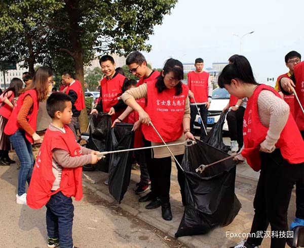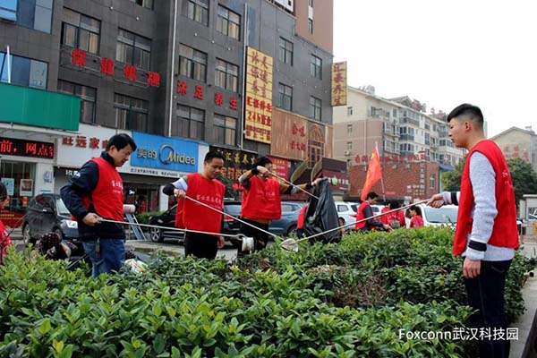 武漢富士康武漢富士康志愿者前往梁山頭社區(qū)開展助潔活動(dòng)