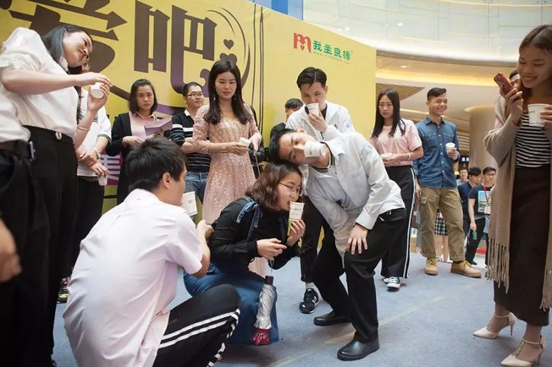 經(jīng)過開場8分鐘的簡單交流,活動便進入最容易讓感情升溫的互動環(huán)節(jié)。為了和心儀的女生有近距離接觸的機會,不少男嘉賓主動邀請女嘉賓上臺,參與“杯水傳情”、“甜蜜喂食”等小游戲。男女嘉賓用嘴咬住杯子互相倒水傳遞,姿勢惹人捧腹,臺上臺下笑聲一片。在甜蜜歡樂的氣氛中,陌生的青年男女逐漸放下矜持、敞開心扉?!按蠹乙婚_始都很拘謹,但是通過游戲的方式,很快就熟悉,玩起來就慢慢放開了?!蹦屑钨e小呂笑著對記者說。