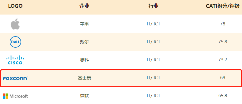 富士康以總分70.30/69的好成績持續(xù)領(lǐng)跑,繼2021年后,蟬聯(lián)2022綠色供應(yīng)鏈CITI指數(shù)/企業(yè)氣候行動CATI指數(shù)大中華區(qū)雙第一名。同時(shí),富士康持續(xù)位列CITI 指數(shù)IT行業(yè)榜單內(nèi)第二名。