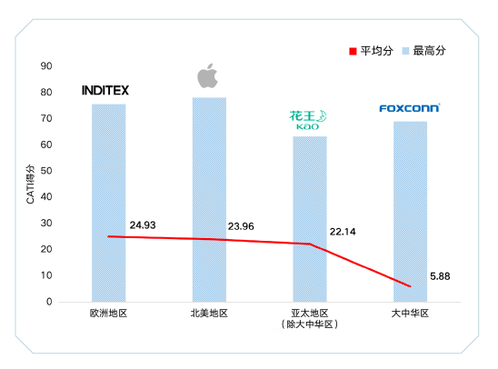 (2022年企業(yè)氣候行動CATI指數(shù)區(qū)域得分對比)