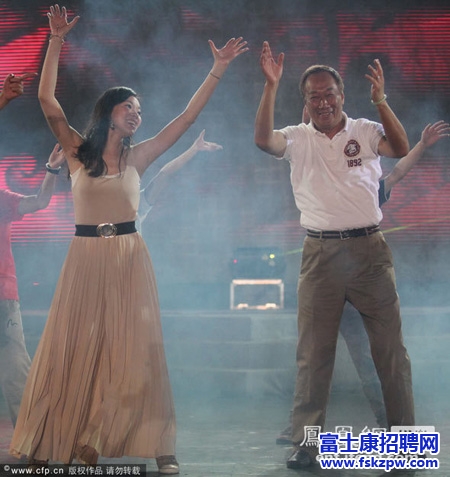 南都訊 記者郭啟明 富士康科技集團(tuán)昨晚在龍華園區(qū)舉辦萬人晚會,以活力動感的街舞迎接即將到來的深圳大運會。富士康掌門人郭臺銘攜妻子作為神秘嘉賓到場,與員工一起勁歌熱舞。