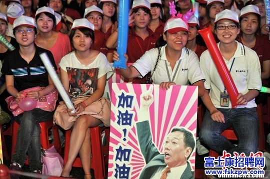 7月29日晚,富士康總裁郭臺(tái)銘在深圳出席“陽(yáng)光大運(yùn)·舞動(dòng)夢(mèng)想”員工聯(lián)歡晚會(huì),期望員工工作內(nèi)容豐富化、生活內(nèi)容家庭化、感情生活理想化;愛(ài)情誠(chéng)可貴,生命價(jià)更高,挫折無(wú)可懼,勇者有未來(lái)。
